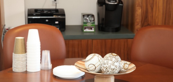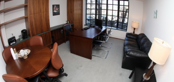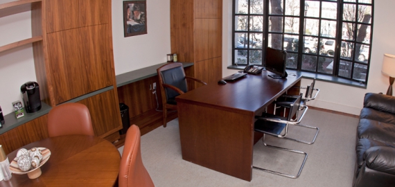The Private Office Suite features a large working desk with low-profile computer, phone system, printer and office supplies. A compact conference table and chairs, together with a comfortable sofa, provide ample seating and comfort for special guests. A single-serve coffeemaker, small refrigerator and easy access to the Shluchim Center Cafeteria offers a variety of hot and cold drinks as well as snacks.